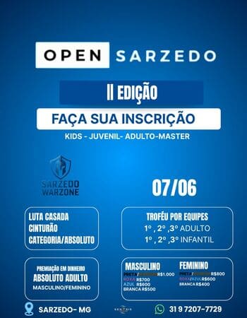 6º Aberto JJ de Caratinga 22 de Março de 2026 Localização Caratinga -MG Valores Ate